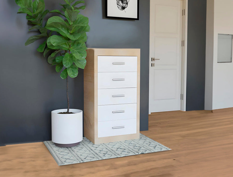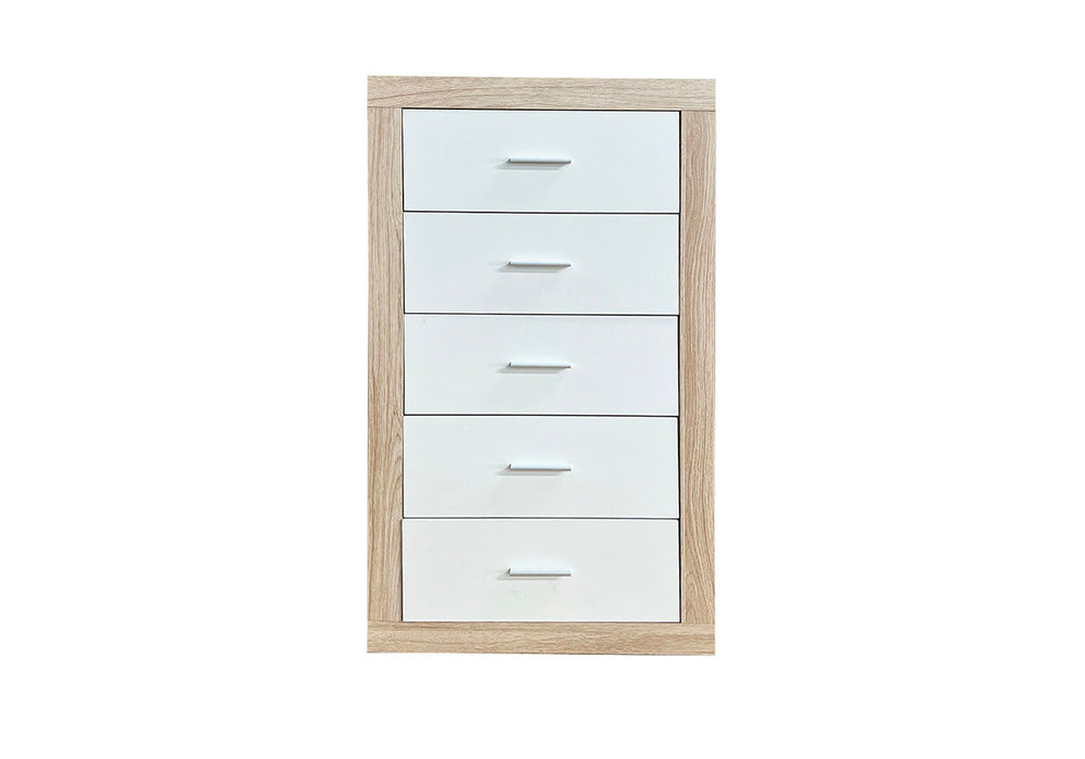 Organiza tu ropa con estilo y elegancia con nuestro sinfonier de la Colección KIARA. Con cinco amplios cajones, este mueble ofrece una solución versátil para el almacenamiento de tus prendas, mientras que su diseño en blanco y cambria añade un toque de luminosidad y calidez a tu dormitorio. Fabricado con materiales de alta calidad y acabados impecables, este sinfonier combina funcionalidad y belleza, proporcionando un espacio organizado y estático para tu ropa y accesorios. Su diseño atemporal se adapta fácilmente a cualquier estilo de decoración, convirtiéndolo en un elemento imprescindible en tu hogar. Facil montaje.