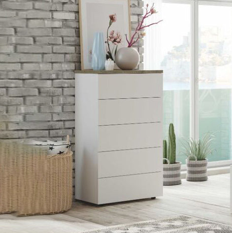 Maximiza el estilo y la funcionalidad en tu dormitorio con nuestro sinfonier blanco de cinco cajones, que cuenta con una tapa superior que se abre para revelar un espejo y un espacio adicional de almacenamiento. Este versátilmueble combina elegancia y practicidad para ofrecerte una solución completa de Organización.