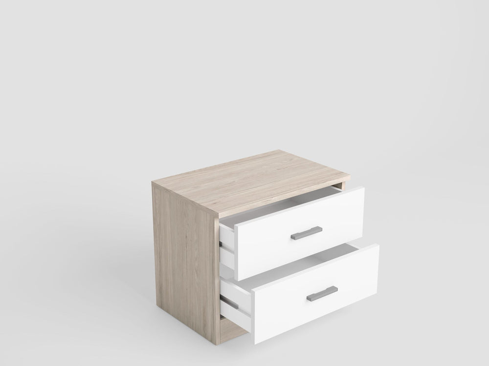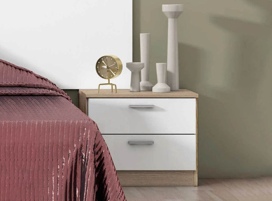 Optimiza tu espacio y añade un toque de elegancia a tu dormitorio con nuestra mesita de noche Couple con 2 cajones. Este practico mueble no solo ofrece almacenamiento conveniente para tus elementos esenciales junto a la cama, sino que también realza la estética de tu espacio. Los dos cajones proporcionan un espacio organizado para tus pertenencias personales, manteniéndolas al alcance de tu mano. Fabricada con materiales de calidad, esta mesita de noche combina funcionalidad y estilo en un diseño compacto.